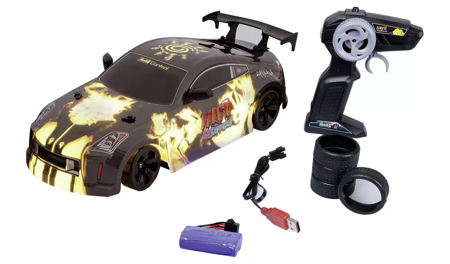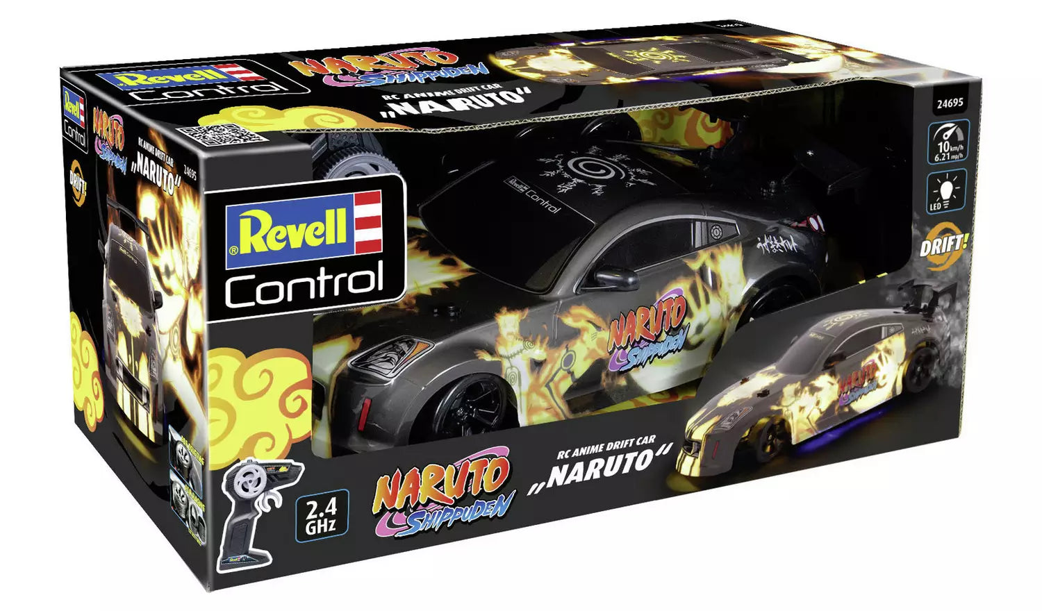 - Official Revell Control Drift Car: 1:18 scale replica styled with bold Naruto Shippuden graphics.